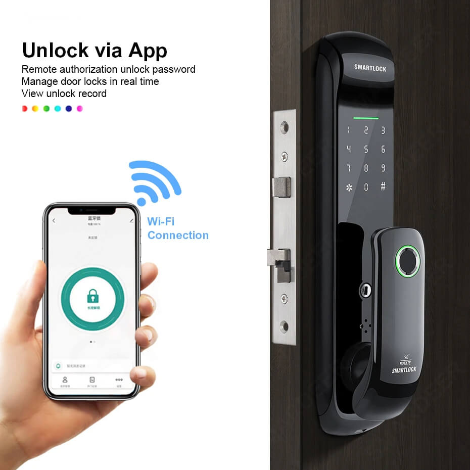 Tuya smart door lock is based on the built-in WIFI module of the lock panel, which supports remote control, user management, fingerprint management, password management, message management, card management, setting and deleting individual users, security alarm, etc. You can unlock it in many ways, including wifi access, fingerprint, password, card, key, App, etc. In addition, it has a built-in doorbell and supports a self-locking function.