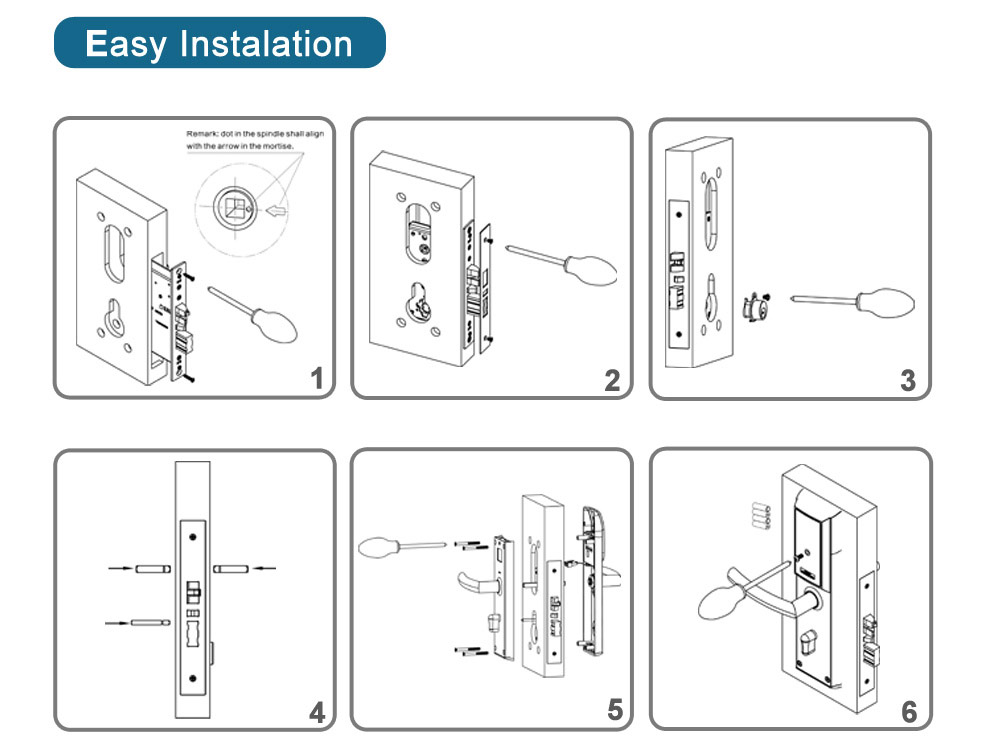 The Package of smart door lock including Front panel, rear panel, Mortise, and screw bag.